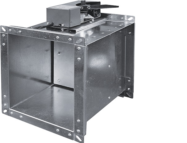 Корпус прямоугольного сечения является несущей конструкцией клапана и снабжен на торцах присоединительными фланцами. Во внутренней части в местах примыкания створки установлены нащельники и термоуплотнительная лента. Створка, полость которой заполнена термоизоляционным материалом, установлена в корпусе на осях. Вращающийся момент на ось створки передается от привода. Исходное положение створки определяется назначением: В исходном положении створка НО клапана открыта, а створка НЗ и дымового клапанов-закрыта.
