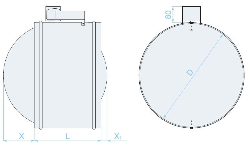 Минимальный диаметр изготавливаемых круглых клапанов — 100 мм. Клапан FKS круглого сечения изготавливается как на ниппельном соединении, так и на фланцевом. Клапан FKS круглого сечения с Ø 630 мм и выше рекомендуется применять на фланцевом соединении. Необходимо обратить внимание, что потери давления на клапанах Ø 100, Ø 125, Ø 160 относительно велики, поэтому их применение должно иметь техникоэкономическое обоснование. В большинстве случаев рекомендуется применять клапаны минимальным диаметром Ø 200 мм.