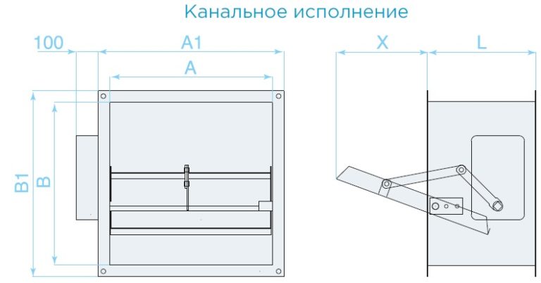ζв — коэффициент местного сопротивления, относящийся к скорости в воздуховоде (шахте) VВ, ζкл — коэффициент местного сопротивления, относящийся к скорости в проходном сечении клапана VКЛ, FВ — площадь внутреннего сечения воздуховода (шахты), м2, FКЛ— площадь проходного сечения клапана FКЛ = ((А-30)х(В-50))/102, м2, А и В —установочные размеры клапана, мм (А>В), ζв = ζкл (FВ / FКЛ).