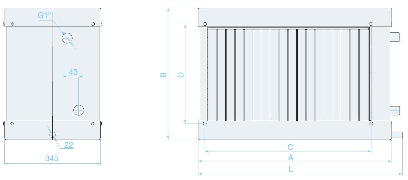 Водяной охладитель SPC-W предназначен для охлаждения воздуха в системах вентиляции и кондиционирования. Эффективный медноалюминиевый пластинчатый теплообменник в трехрядном исполнении. Теплообменник изготовлен из алюминиевых ламелей толщиной 0,2 мм с шагом 2,5 мм и проходящих через них медных трубок диаметром 9,52 мм. Шахматное расположение трубок. Хладоноситель: вода или незамерзающие смеси (максимально допустимое давление 1,5 МПа). Диаметры подводящих и отводящих патрубков водяного воздухоохладителя G1”. Каплеуловитель расположен за теплообменником по ходу воздуха и служит для сбора сконденсировавшейся влаги в поддон, находящийся в нижней части водяного охладителя. В поддоне предусмотрен отводной патрубок для слива конденсата. Температура наружного воздуха Тн = 30°С, влажность 43%. Температура воды 7/12°С.