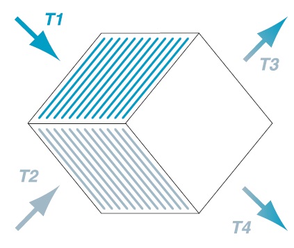 Пластинчатый рекуператор предназначен для утилизации тепла (холода). Вытяжной, удаляемый из помещения, воздух протекает в каналемежду пластинами теплообменника, нагревая их. Приточный воздух, протекая через остальные каналы теплообменника, нагревается. Теплообменник изготовлен из алюминиевых пластин, создающих систему каналов для протекания двух потоков воздуха. В теплообменнике происходит теплопередача между этими тщательно разделенными потоками с различной температурой. При данном типе рекуперации происходит полное разделение воздушных потоков, что позволяет использовать пластинчатые рекуператоры в системах с высокими требованиями к чистоте воздуха. КПД пластинчатых рекуператоров составляет около 70%, при этом перепад давления на данном элементе, как правило, не превышает 200250 Па. Рекуператоры практически не требуют энергозатрат при эксплуатации и обладают высокой надежностью благодаря отсутствию движущихся частей. Конструкция позволяет использовать их в приточно-вытяжных установках как ярусного, так и смежного исполнения. На пластинах может образовываться конденсат, для слива конденсата они оборудованы отводами. В комплект входит штуцер, который устанавливается на съемную панель. Конструкция съемной панели представляет собой своеобразный поддон, в котором скапливается конденсат. Для исключения обледенения в ХПГ на теплообменнике устанавливается датчик температуры или давления, управляющий положением клапана обводного канала. Открывается обводной воздушный канал и закрывается воздушный клапан, установленный на стороне приточного воздуха. Приточный воздух проходит через обводной канал теплообменника, а вытяжной через рекуператор, нагревая при этом замерзшую поверхность теплообменника. После оттаивания и снижения перепада давления закрывается обводной канал и открывается теплообменник для прохода приточного воздуха.