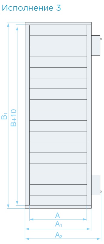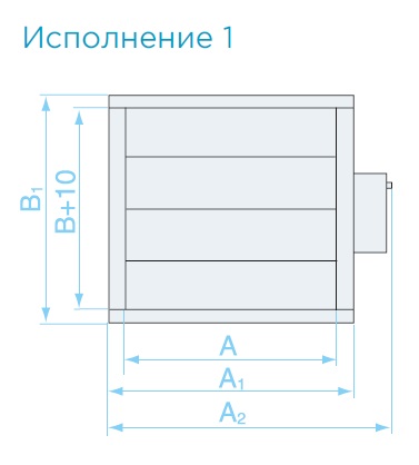 Фактический размер высоты внутреннего сечения клапана отличается от его типоразмера В на 10 мм и равен B+10.