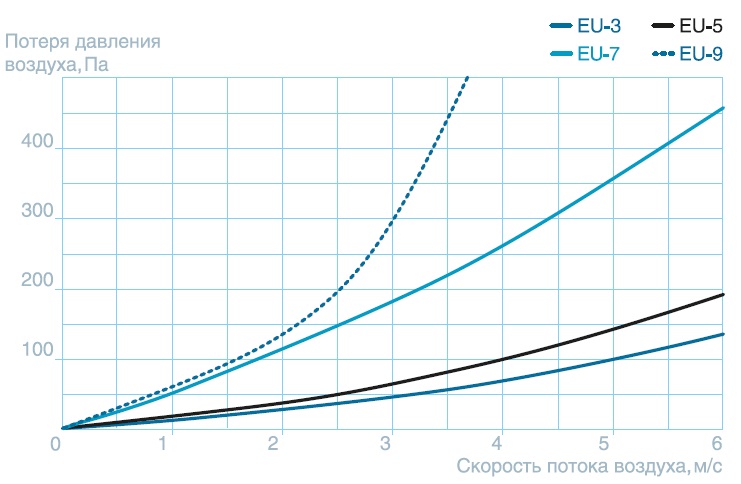 | Технические характеристики фильтрующего материала | EU3 | EU5 | EU7 | EU9 |