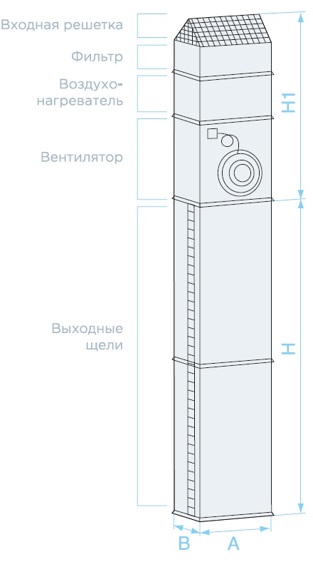 Защищает помещения от холодного воздуха. Вертикальное или горизонтальное размещение. Высота или длина перекрываемого проема от 2 до 5 м. Площадь проема, перекрываемого одной завесой, не более 12 м². Завесы трех типов: с водяным, электрическим нагревом и без нагрева. Шесть типоразмеров, расход воздуха от 3075 м³/час до 9700 м³/час. Щелевые секции длиной 1 м и 1,5 м из оцинкованного стального листа.
