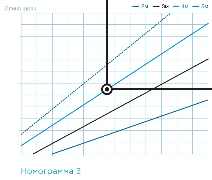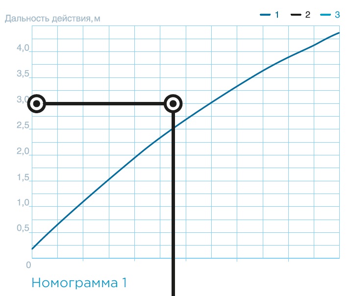 3 — Дальность действия, длина щели (номограмма 1)