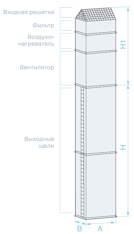 Защищает помещения от холодного воздуха. Вертикальное или горизонтальное размещение. Высота или длина перекрываемого проема от 2 до 5 м. Площадь проема, перекрываемого одной завесой, не более 16 м². Завесы трёх типов: с водяным, электрическим нагревом и без нагрева. Шесть типоразмеров, расход воздуха от 3 075 до 9 100 м³/час. Щелевые секции длиной 1 и 1,5 м и воздухозаборная решетка из оцинкованного стального листа.