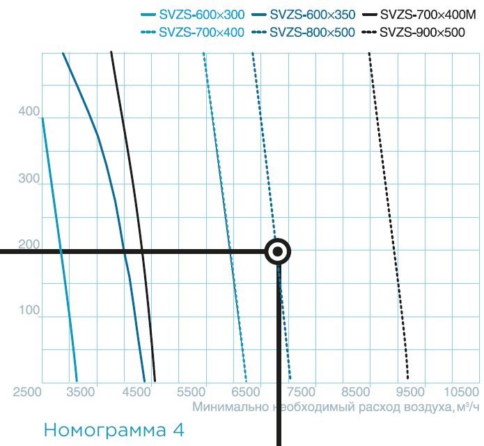 4 — Скорость потока воздуха на выходе (номограмма 2)