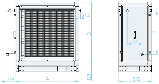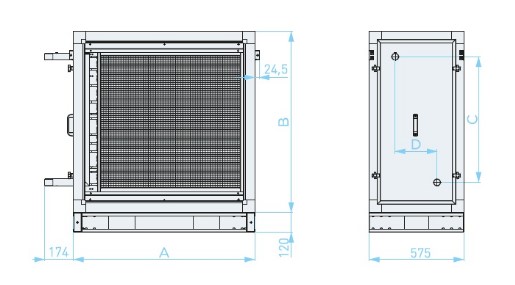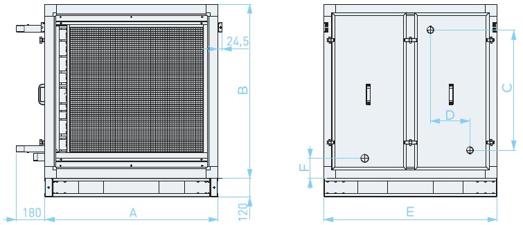 Система рекуперации представляет собой схему передачи теплоты вытяжного воздуха приточному с помощью двух жидкостных теплообменников, находящихся в вытяжной и приточной камерах. КПД рекуперации достигает 40%. Воздушные потоки приточного и вытяжного воздуха герметично изолированы друг от друга. Данный фактор позволяет использовать секции рекуператора в системах, в которых технологически невозможно применение пластинчатых или роторных рекуператоров, а также при необходимости монтажа приточной и вытяжной части на значительном расстоянии друг от друга. Поверхность теплообменника изготовлена из алюминиевых пластин и проходящих через них в шахматном порядке медных трубок. Трубные коллекторы из стали имеют резьбовые патрубки для обезвоздушивания теплообменника и слива воды. Исполнение теплообменников — восьмирядное. Вытяжная часть дополнительно оснащена профильным пластиковым каплеуловителем и поддоном с патрубком для сбора и слива конденсата с наружной резьбой G1 1/2“.