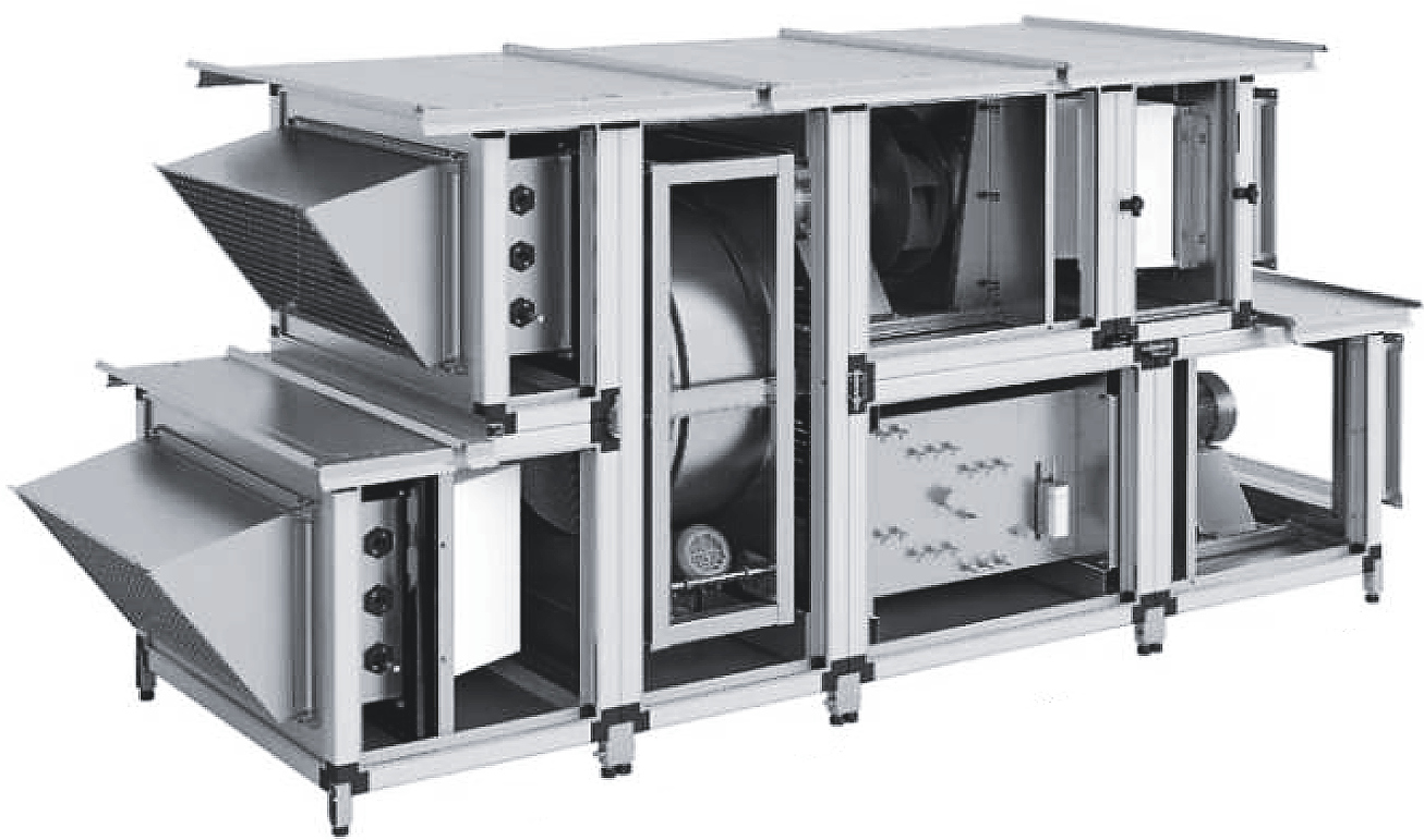 Любые конфигурации установок SUPM и SUPB возможно изготовить в наружном исполнении. Для защиты секций от атмосферных осадков установка имеет крышу из оцинкованного стального листа. Со стороны наружного воздуха устанавливается воздухозаборный козырек, оснащенный стальной сеткой. В установках SUPM наружного исполнения заслонка с приводом располагается в воздухозаборной секции. Привод воздушной заслонки установок SUPB наружного исполнения закрыт кожухом из оцинкованного стального листа.