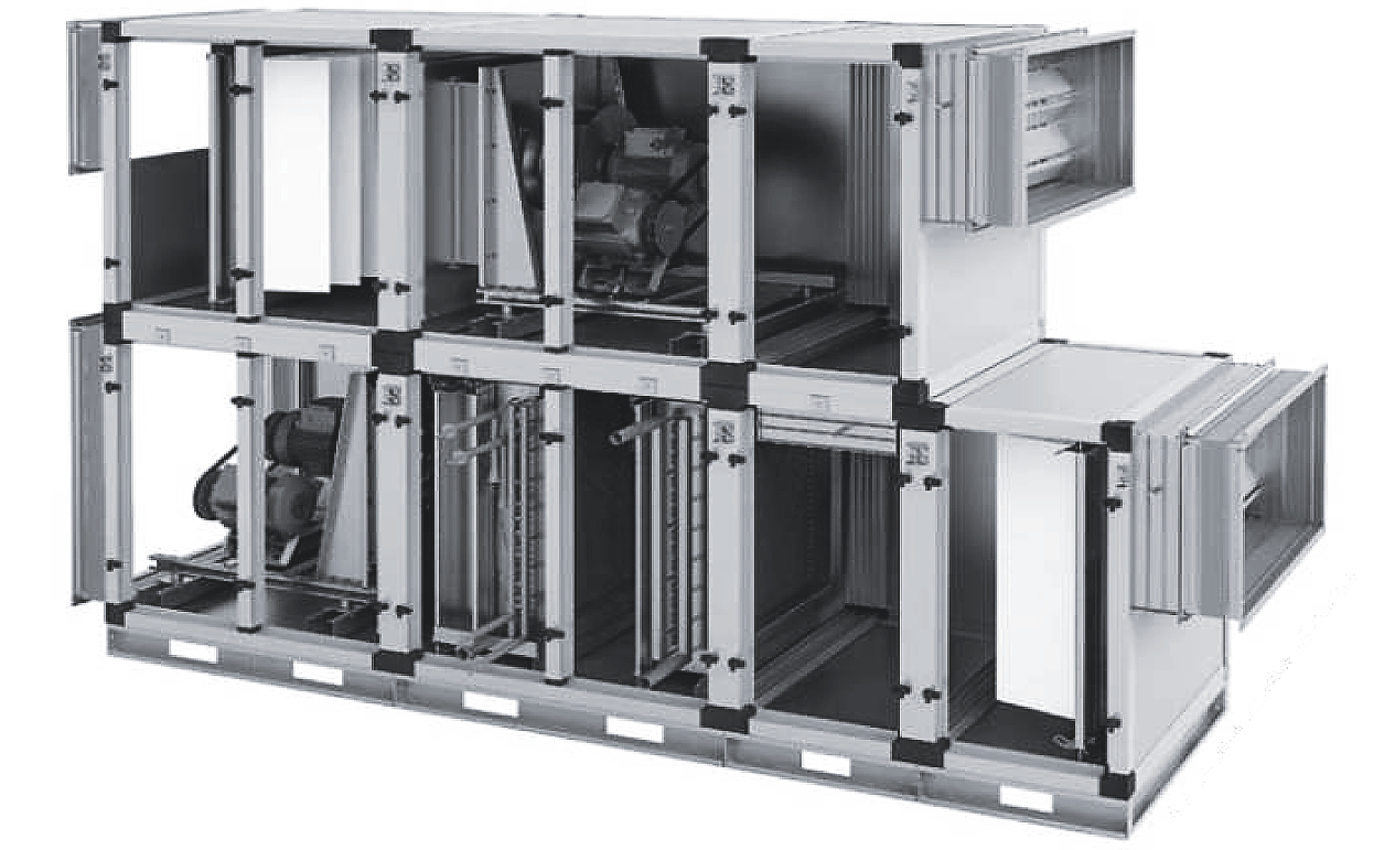Для обеспечения непрерывной работы вентиляционной установки возможно изготовление вентиляторных секций установок SUPM и SUPB с резервным двигателем. Компактное размещение резервного двигателя позволяет в большинстве случаев не увеличивать габаритов вентиляторной секции и, как следствие, установки в целом. Оригинальная конструкция позволяет провести замену вышедшего из строя двигателя в кратчайшие сроки. Основной рабочий двигатель соединен клиноременной передачей с резервным двигателем, на валу которого установлено рабочее колесо. В случае обрыва ремня или выхода из строя основного двигателя система автоматики по дифференциальному датчику давления переключит питание с основного двигателя на резервный.