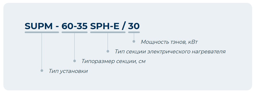 Нагреватель SUPM SPH-E представлен восемью типоразмерами, в каждом из которых доступны различные мощностные модификации, что увеличивает функциональные возможности данного типа оборудования. Нагревательные стержни трубчатого типа изготовлены из нержавеющей стали и укреплены алюминиевыми распорками для предотвращения вибраций. Количество ступеней электронагревателя кратно 15 кВт и зависит от его общей мощности. Класс изоляции корпуса IP 40. Рабочий диапазон температур проходящего воздуха от –40°C до +40°C.