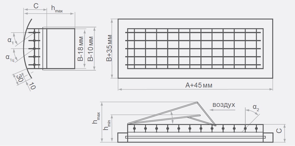 Решетки устанавливаются на круглые воздуховоды путем врезки и предназначены для подачи и удаления воздуха в помещениях различного назначения. Двухрядные решётки SGD-K представляют собой стальной корпус с установленными в нем индивидуально регулируемыми алюминиевыми жалюзи для изменения направления и/или характеристик приточной струи. Жалюзи установлены в пластиковые втулки, которые облегчают их поворот при регулировании. Наружный ряд жалюзи расположен параллельно, внутренний – перпендикулярно. Два ряда позволяют регулировать направление и дальнобойность приточной струи в зависимости от требуемых параметров воздуха и осуществлять посезонное регулирование системы при переходе с режима охлаждения на отопление, что расширяет их область применения. Решетки оснащены регулятором потока, используются для подачи воздуха при установке одной или нескольких решеток и необходимости настройки сети. Решетки окрашиваются методом порошкового напыления в серый цвет (RAL 7047). При изготовлении продукции на заказ возможна окраска в любой цвет по каталогу RAL.