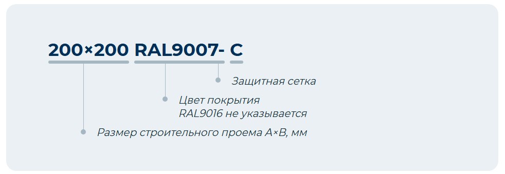 Стандартный цвет покрытия — белый RAL 9016 при заказе не указывается (возможно окрашивание в любой другой цвет, согласно каталогу цветов RAL). Минимальный размер решетки 100×100. Определяющими размер решетки являются размер проема для монтажа.