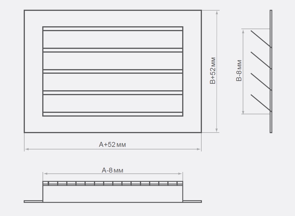 Решетки SGN(Zn) используется для подачи и удаления воздуха в приточно-вытяжной вентиляции, предназначена для монтажа в воздуховоды или строительные проемы помещений различных назначений. Решетки SGN(Zn) изготавливаются из оцинкованной стали. Преимуществом является невысокая стоимость и крайне презентабельный внешний вид. Решетка представляет собой раму с установленными в неё неподвижными жалюзи, которые препятствуют проникновению атмосферных осадков с улицы. По умолчанию решетка изготавливается с монтажными отвверстиями для винтового соединения. Решетки могут комплектоваться адаптером для бокового или осевого присоединения к воздуховоду круглого и прямоугольного сечения.