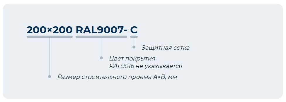 Возможно изготовление решёток из оцинкованной, нержавеющей или холоднокатаной стали по заявке заказчика. Стандартный цвет покрытия — белый RAL 9016 при заказе не указывается (возможно окрашивание в любой другой цвет, согласно каталогу цветов RAL). Минимальный размер решетки 100×100.