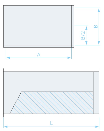 Длина шумоглушителя, толщина и материал звукопоглащающего слоя — оcновные факторы, которые понижают шум. По специальному заказу возможно изготовление шумоглушителей ГТПи различного сечения A, B и различной длины L. Если предъявляются высокие требование по уровню шума не только к воздуховоду, но и к оборудованию в целом, то следует установить шумоглушитель совместно со звукоизолированным вентилятором.