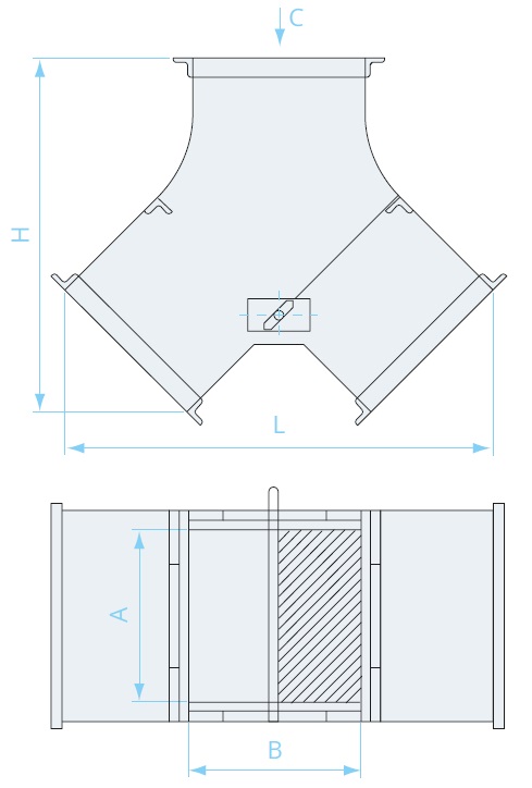 Клапан состоит из корпуса, во втулке которого на оси закреплена лопатка. При возникновении воздушного потока в полости, перекрытой лопаткой, последняя поворачивается на своей оси на 90°, открывая проход воздуху и одновременно перекрывая вторую полость. Специальный указатель на внешней стенке корпуса показывает положение лопатки. Клапан изготавливается из черной х/к стали на фланцах из уголка.