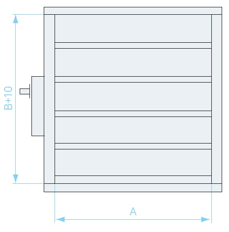 В алюминиевой заслонке длина всегда постоянна и равна 125 мм. При высоте заслонки B не кратной 100 мм, оставшаяся часть перекрывается полосой оцинкованной стали.