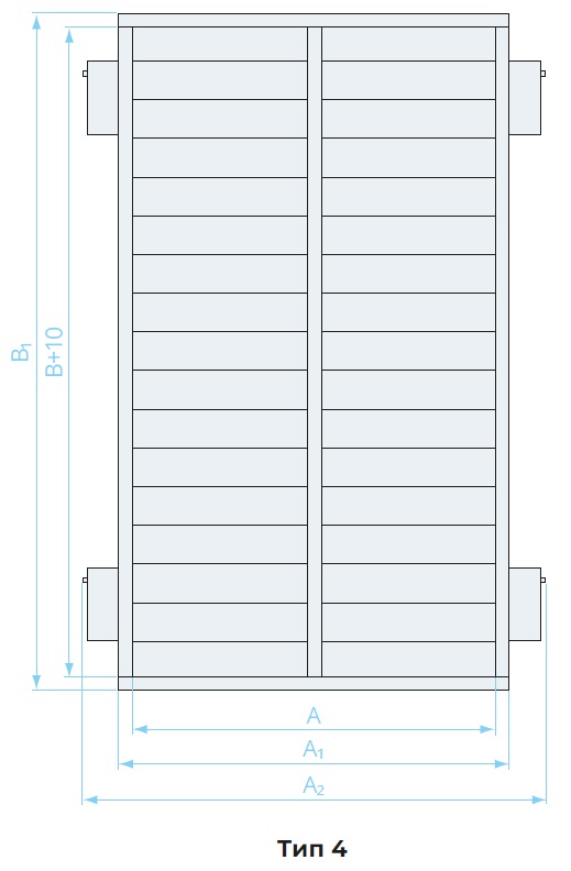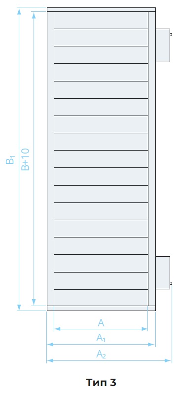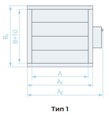 Фактический размер высоты внутреннего сечения клапана отличается от его типоразмера В на 10 мм и равна B+10.