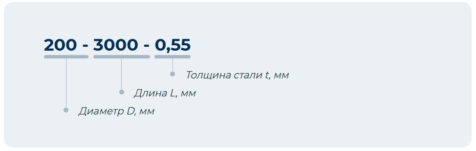 Длина L стандартного спирально-навивного воздуховода равна 3000 мм, допустимо изготовление любой длины от 300 до 12000 мм.