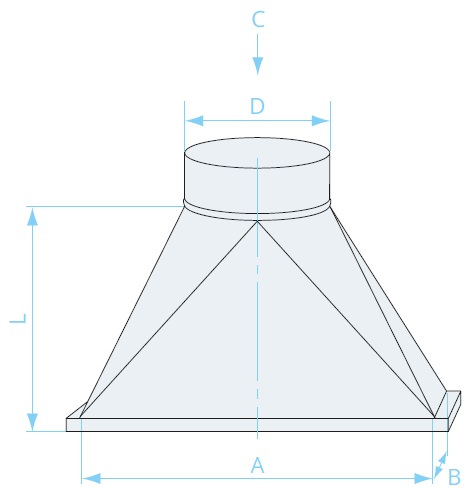 Переход используется когда система воздуховодов одного сечения переходит на систему воздуховодов другого сечения.