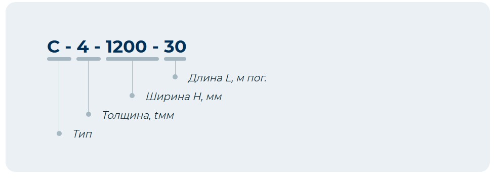 | Тип | t, мм | H, мм | L, м пог. | S, м2 |