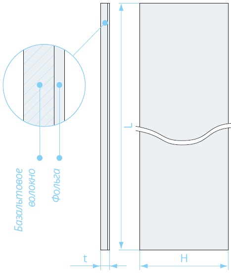Может быть изготовлено с облицовкой (кашировано) алюминиевой фольгой, металлической сеткой (или комбинацией фольги и сетки), стеклянной, базальтовой или кремнеземной тканью или без облицовки